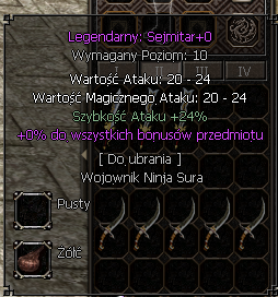 Chciałbym, żeby odstęp między „Szybkość ataku” a pozostałymi bonusami był taki sam, jak odstęp między „Wymagany poziom” a „Wartość ataku”.