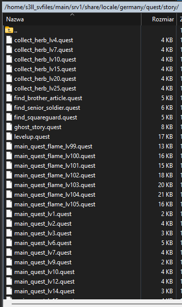 Dobry dzień, czy ma ktoś może pod ręką albo rzuciło mu się w oczy zestawienie domyślnych questów w tym polowanie itd.? Korzystam z martysamy v5.8 i one tu były pobugowane tzn. były "main" questy miały warunki że np. min. 20lvl max 29lvl itd.. (po zmianie i tak polowa nie działa) Tak samo polowania są domyślnie w 5.8 pobugowane dlatego pytam może ktoś ma gdzieś albo wie które pliki to mają to sobie pobiorę i przerzucę (tak kompilowałem questy i nie pomaga)